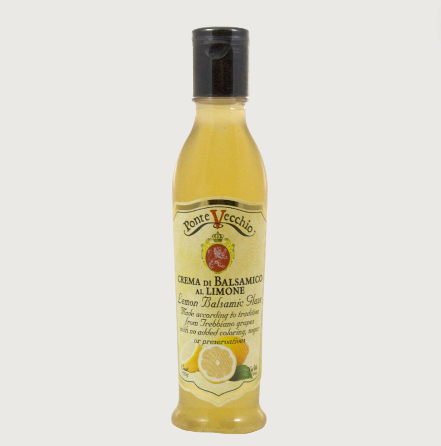 White Lemon:  Use this lemon balsamic glaze on salads, vegetables, fruit and cheese, poultry or seafood, or ice cream and sorbet. Contains absolutely no colorants, preservatives or added sugar.