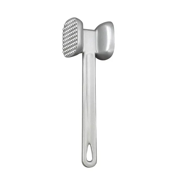 HIC Kitchen's Non-Stick Meat Tenderizer with a dual-head design helps elevate otherwise tough cuts of meat to a higher culinary standard. The toothed head breaks up tough meat fibers for a more tender meat texture and the plain head flattens meat to a consistent thickness to cook evenly. It's balanced for even strikes during use. For best results, trim away excess fat and chill meat in the freezer for about 30-minutes (not long enough to freeze). Always place a cutting board under the meat to protect countertops. Work both sides of the meat to a consistent thickness and texture, working thicker areas more than thinner areas, without breaking all the way through.