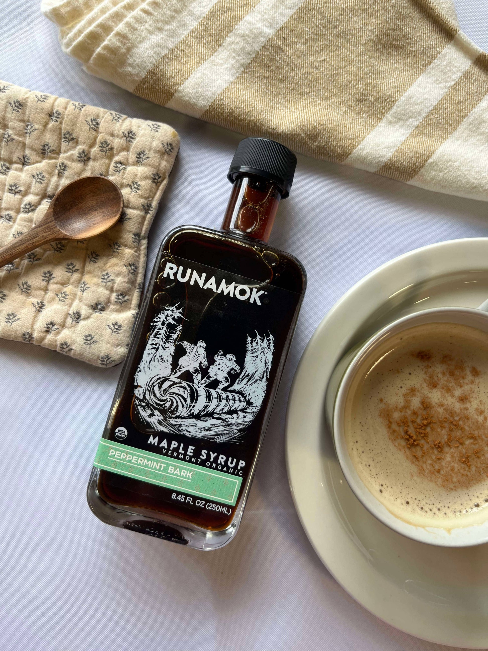 We all know mint and chocolate were meant to be together. But how about this classic duo with a maple base? Welcome to the ultimate holiday topper: the bright flavor of mint combined with rich cocoa, all enrobed in the caramel goodness of maple syrup. Just like the beloved Peppermint Bark, this is chocolate and peppermint candy delivered in syrup form. We aimed to balance all three components equally so you have the perfect syrup that evokes memories of a treasured holiday treat.