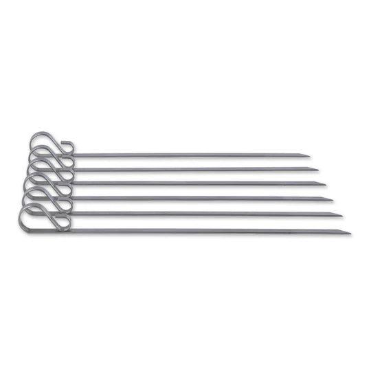 - These durable flat skewers prevent food from spinning and accommodate larger cuts of meats and vegetables.
