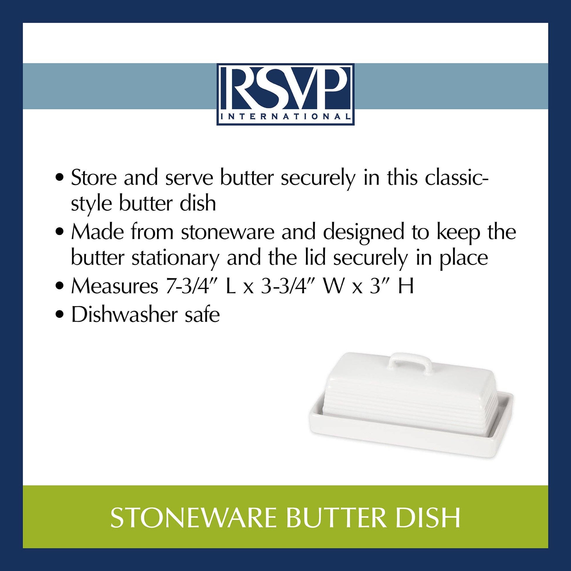 * Made from white stoneware, it features an inner ridge in the tray to keep the butter stationary and the lid securely in place.