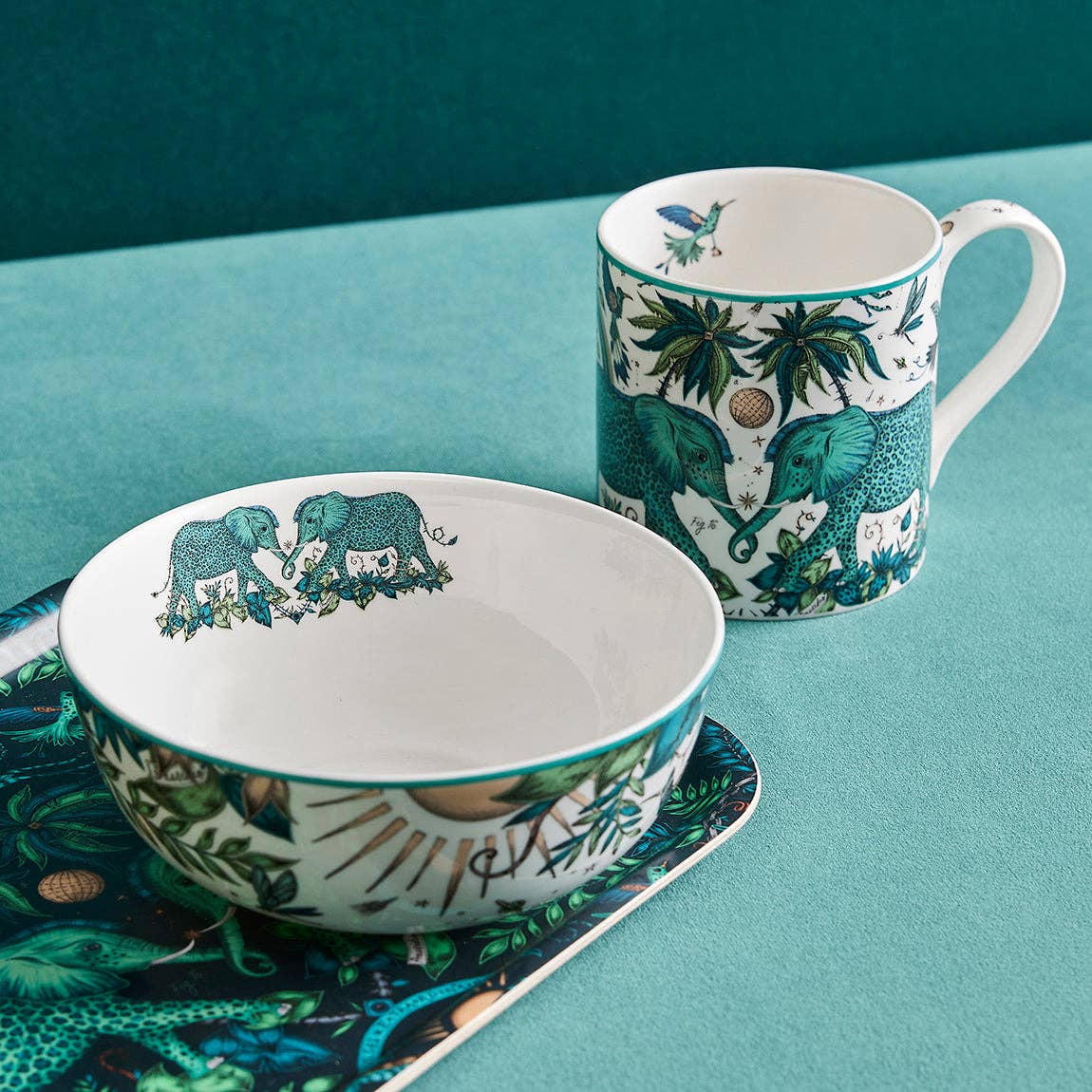 This beautiful bowl is a statement piece for your table! Crafted from fine bone china by skilled artisans in Stoke-On-Trent, UK, The Zambezi bowl has a leaping gazelle, rainbow and magical birds on the outside, with a pair of leopard-spotted elephants on the inside edge.