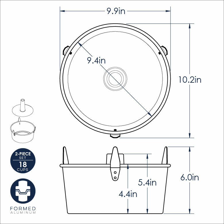 You'll never want to use anything but this classic pan to make your angel food cakes! Made of natural uncoated aluminum, this pan allows your angel food to climb the walls and reach new heights! Its traditional design with raised feet allows the pan to be inverted for efficient cooling. With its removable bottom insert, this pan has every detail covered.
