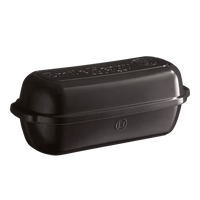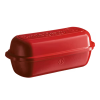 Bake artisan-style, crusty, golden loaves at home with this long covered pan. Emile Henry's specially designed covered baker helps you make bakery-worthy, artisan breads with crisp, golden crusts and chewy, airy interiors. The domed lid and ceramic walls trap steam to create a dry, crackling exterior. Handles on the lid make it easy to remove, and the ridged bottom of the pan keeps dough from sticking. The base fits neatly inside the lid for more compact storage.