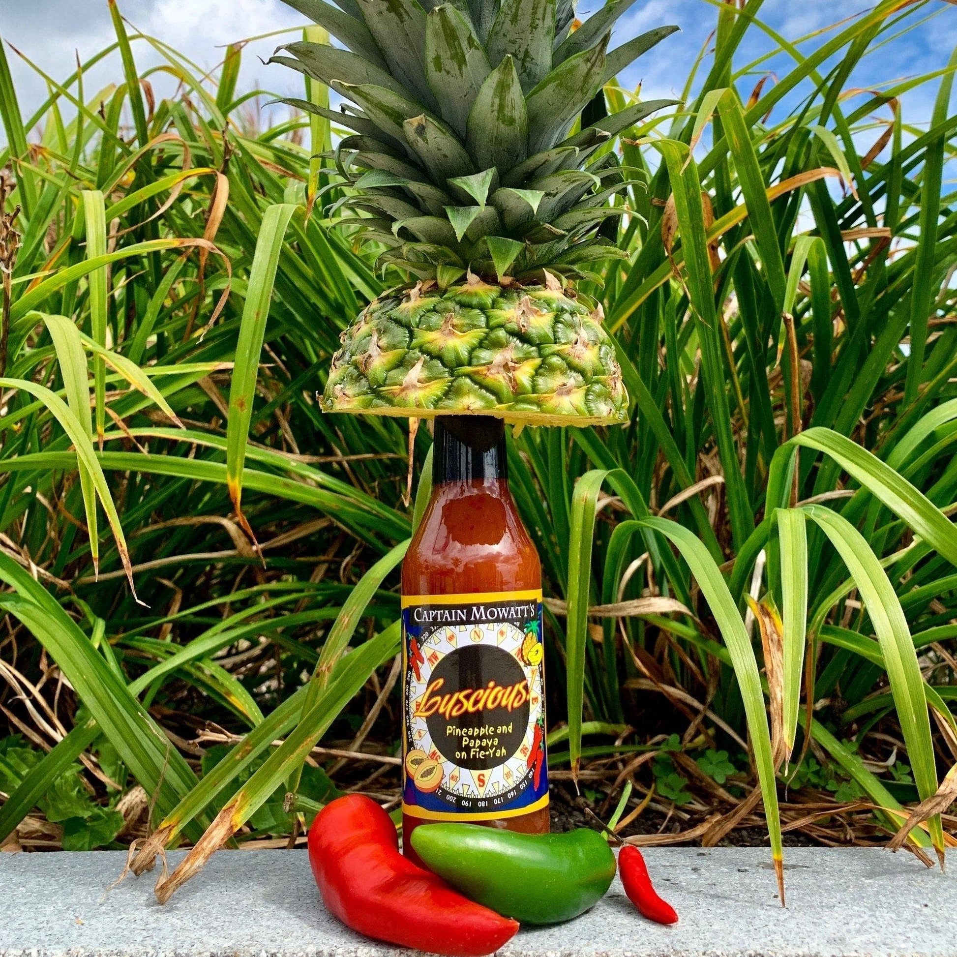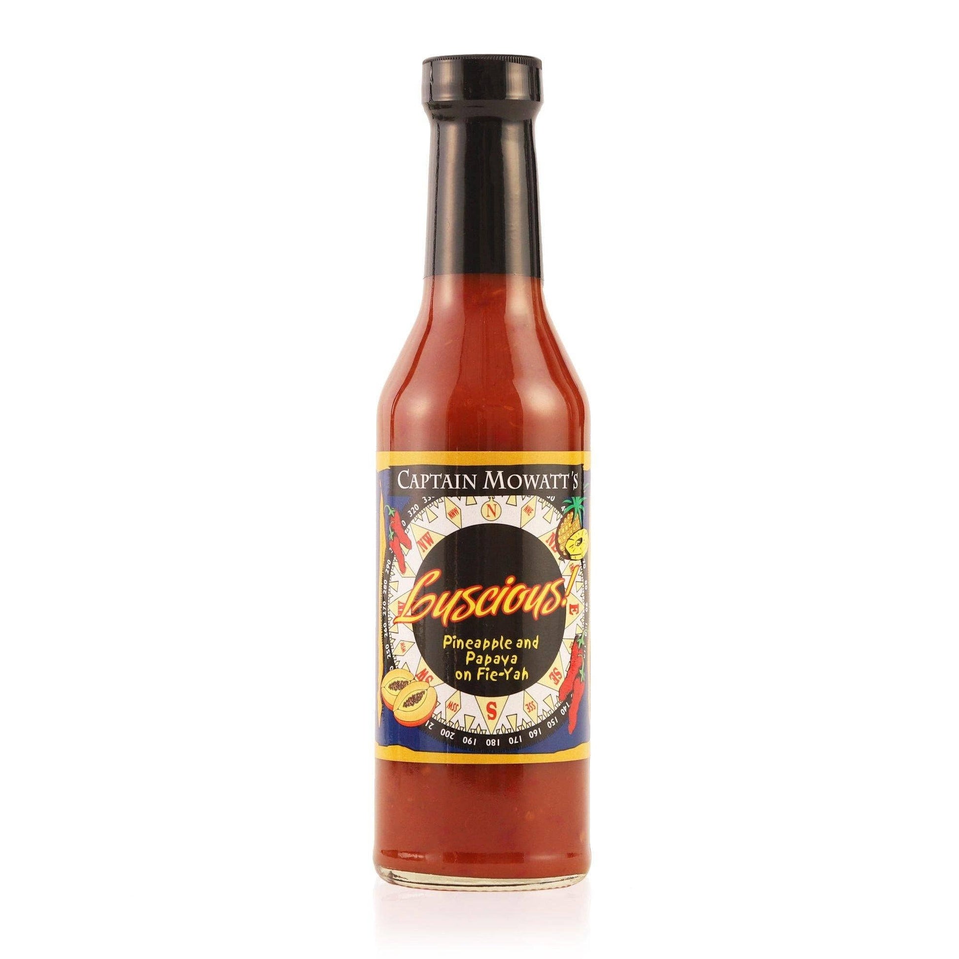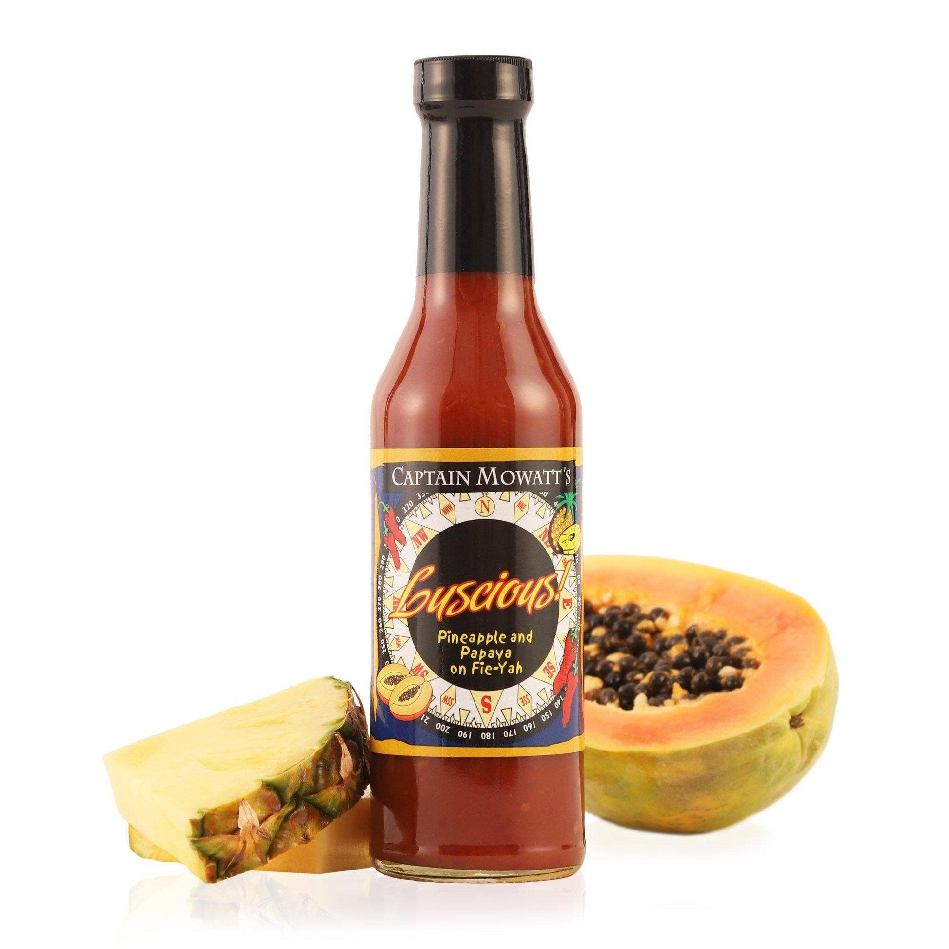 Luscious is a pineapple and papaya hot sauce. Blended red chile peppers with pineapples and papayas to make this tropical sauce. * 8 oz. * All Natural | Gluten Free | Non GMO * Ingredients: Pineapple, Red Chile Peppers, Cider Vinegar, Pineapple Juice, Brown Sugar, Papaya, Lime Juice, Spices, Xanthan Gum & Maine Seaweed. * Try Me On: Kick up your Hawaiian pizza. Mix with coleslaw and put some on a pulled pork sandwich or blackened fish tacos. Add a touch to your sweet and sour pork and it'll never be the same. * Heat Level: 7/10