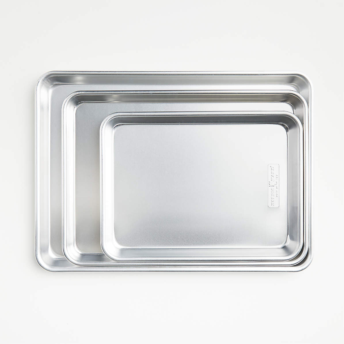 Natural aluminum Baker's Quarter Sheet is a true kitchen workhorse. Bake small batch brownies, cookies, and bars or use it for baking or reheating small meals. It's the perfect tool for rotating appetizers in and out of the oven when entertaining and even becomes an easy serving or lunch tray. You won't believe all the ways you will use your Quarter sheet.