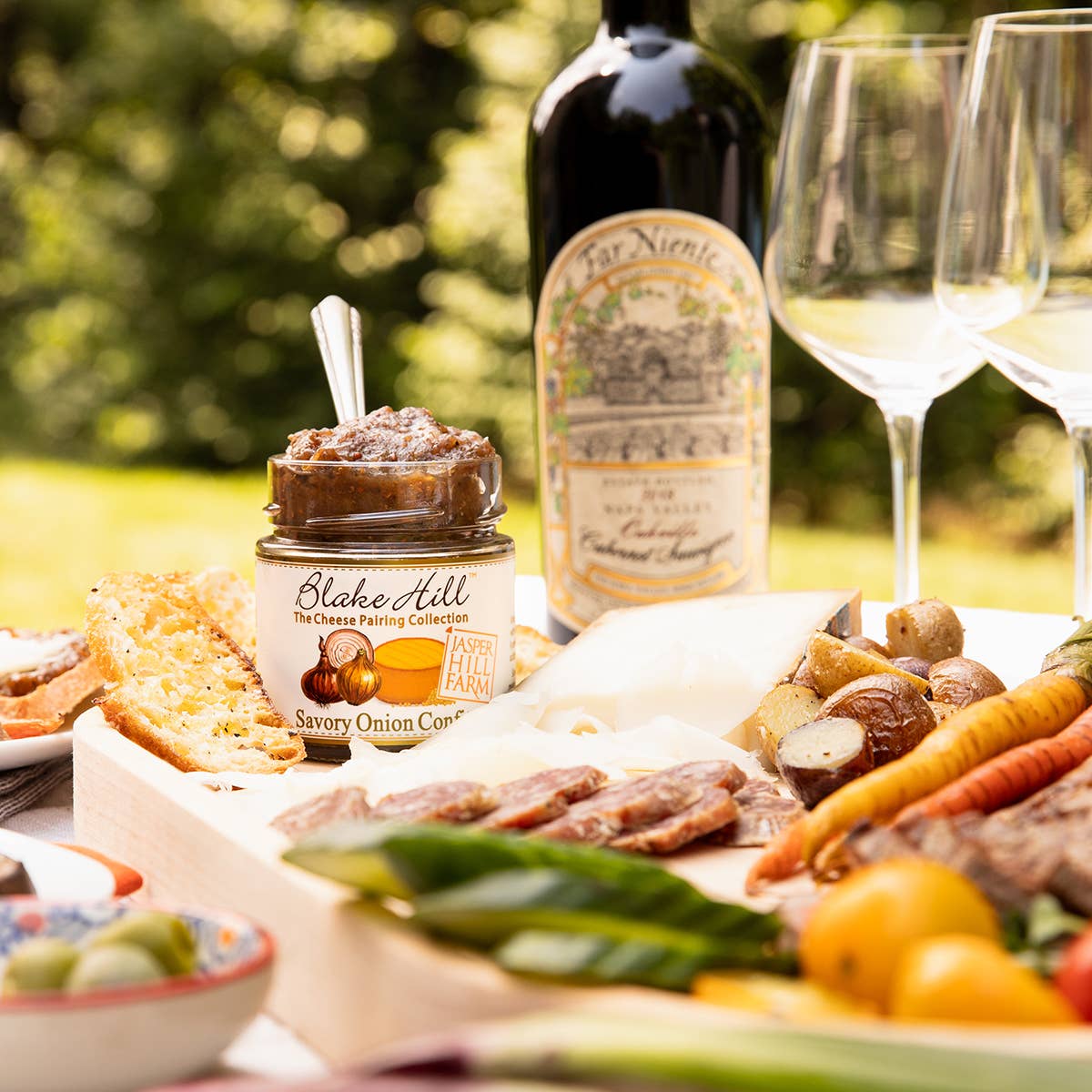 Onions are slow-simmered with mustard spice, apple cider vinegar, brown sugar, cracked black pepper, and sea salt for an incredibly versatile cheese pairing and pantry staple. Created with award-winning cheesemakers Jasper Hill Farm, this jam is designed to pair well with pungent Raclette-style cheese.
